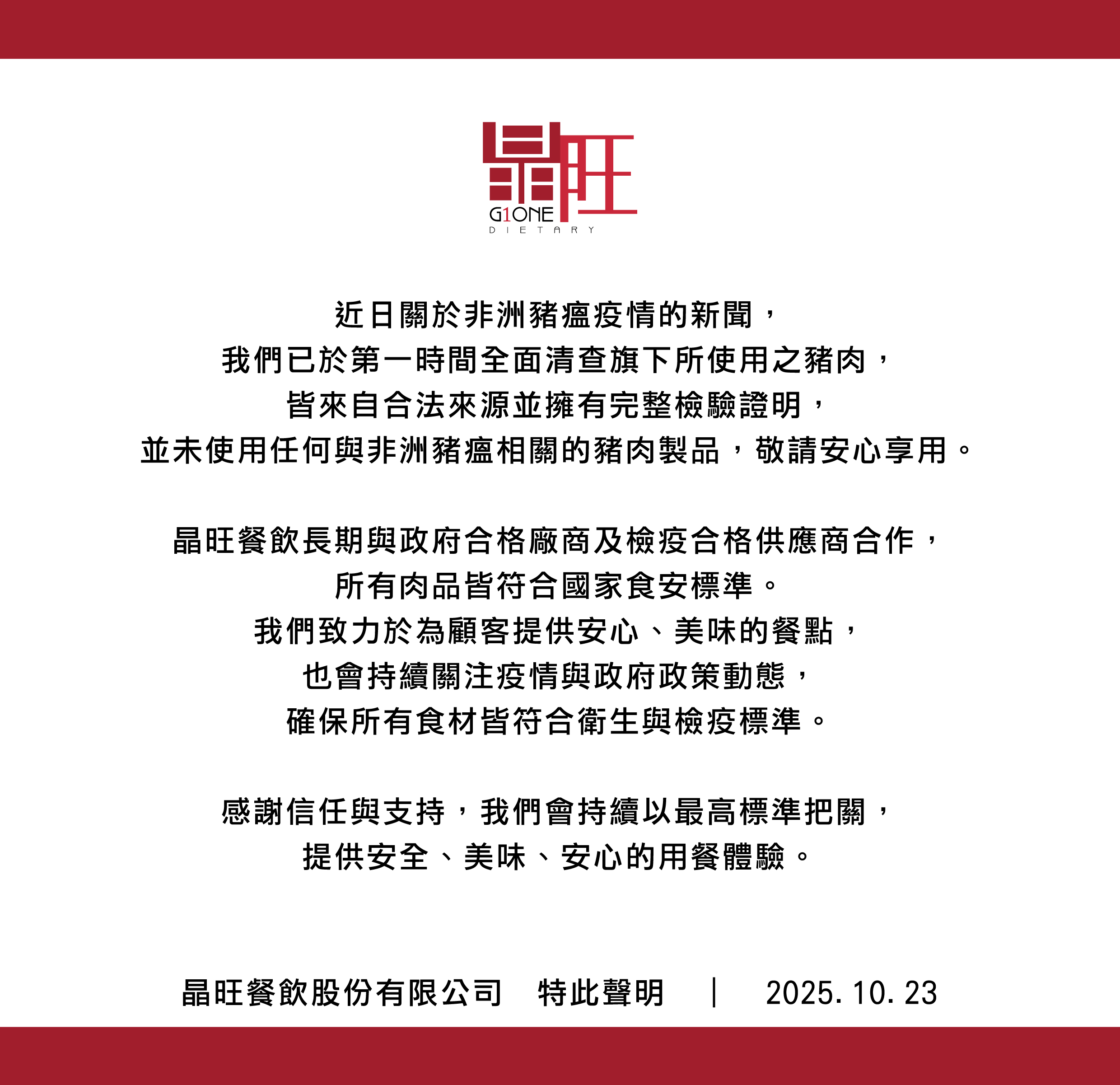 【晶旺聲明】
